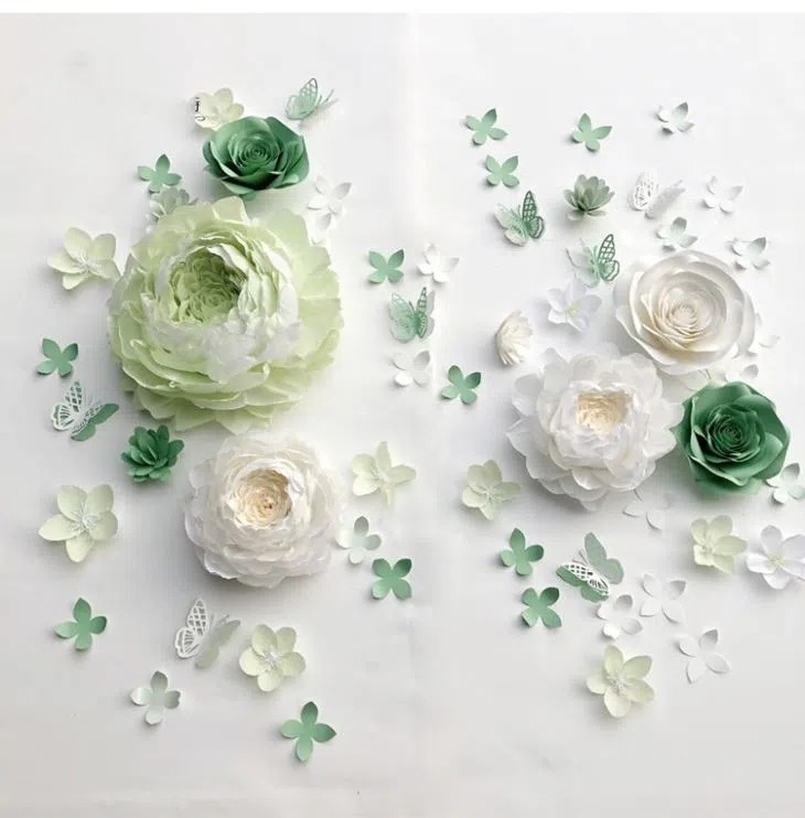 Our Paper Flower Wall Backdrop is all handmade of paper which can be made to be different flowers at different sizes and colors,also the plant leaves are made of paper,they look so beautiful like the real flower.